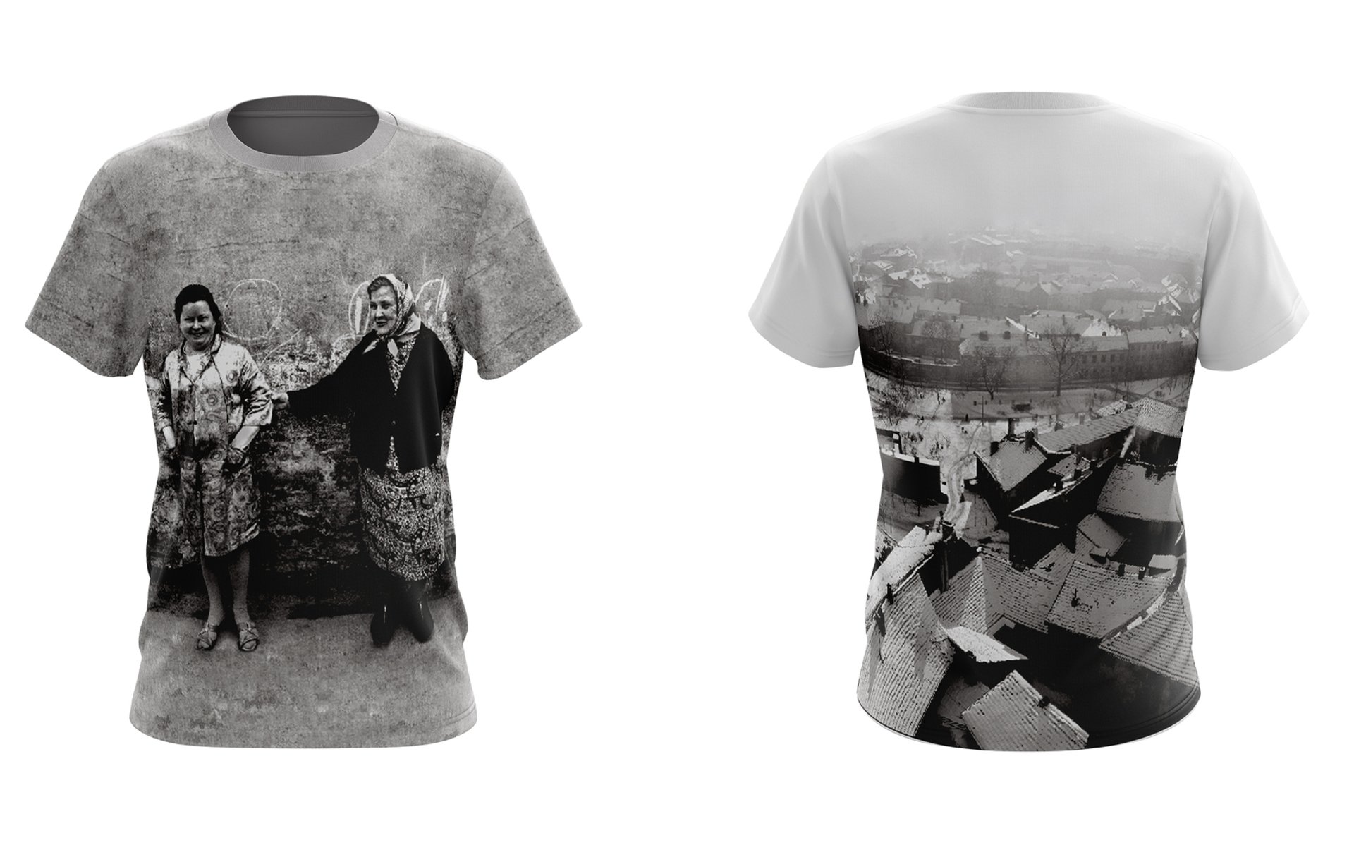 Tai dviejų išskirtinio talento žmonių – fotomenininko Antano Sutkaus ir dizainerio bei teatro kostiumų dailininko Aleksandro Pogrebnojaus bendras kūrinys. Marškinėliams panaudota Antano Sutkaus fotografija „Senamiesčio gyventojos“ (Vilnius, 1968).